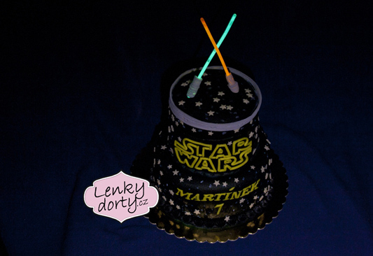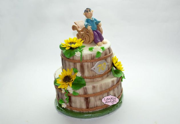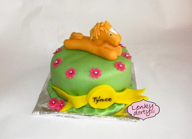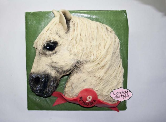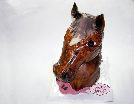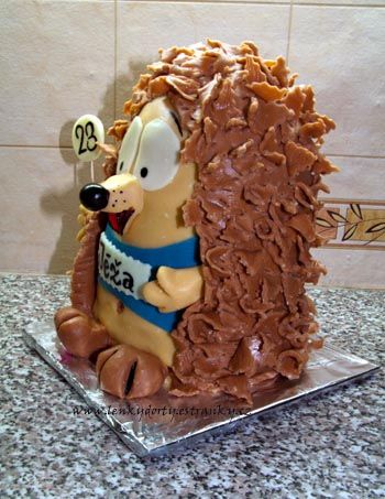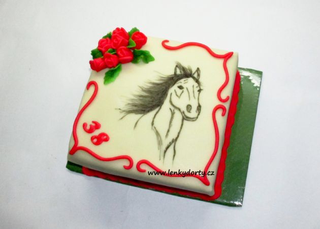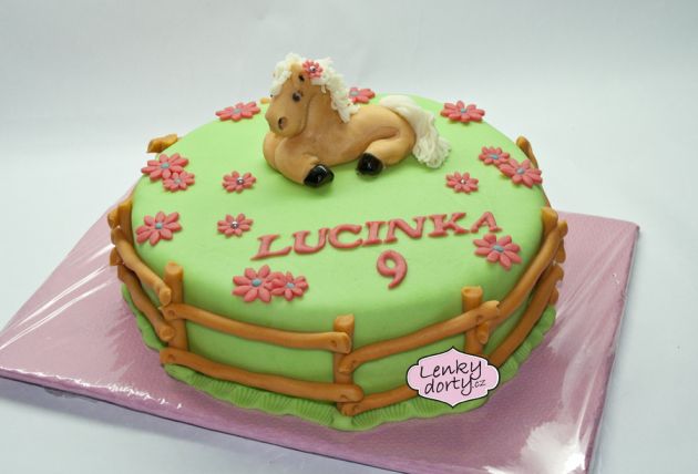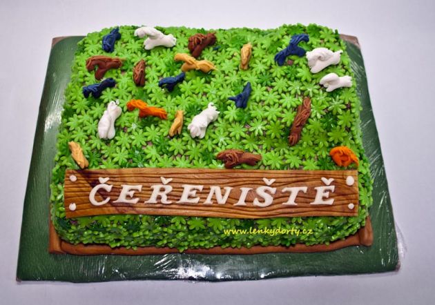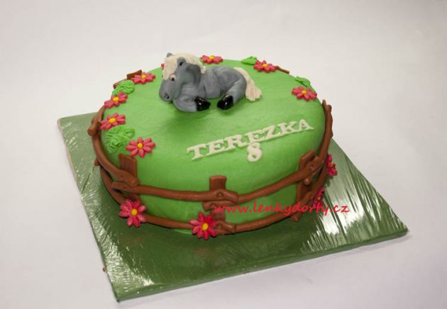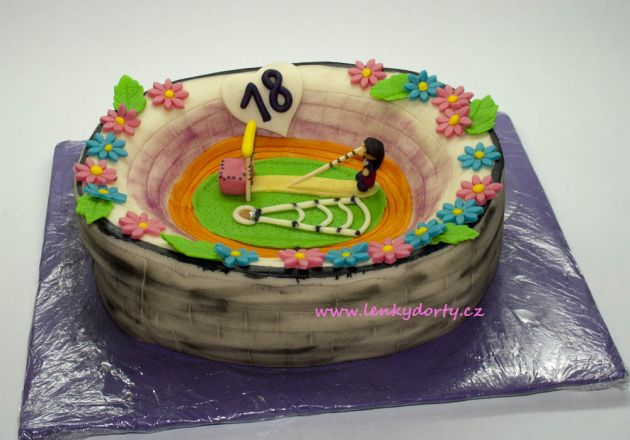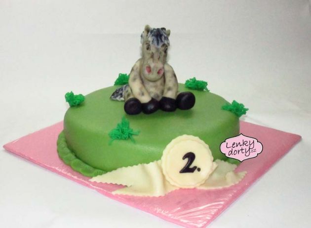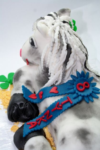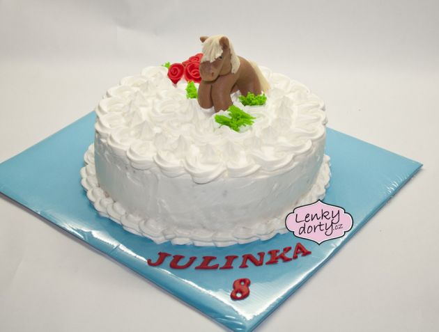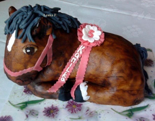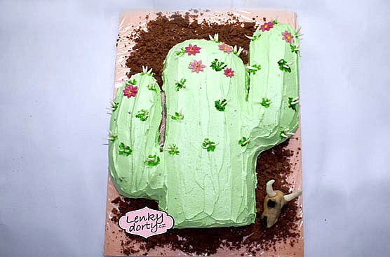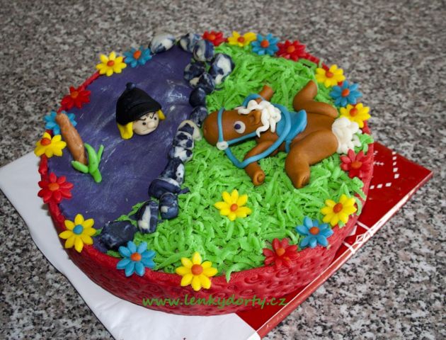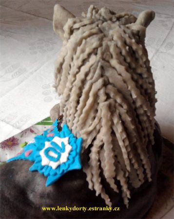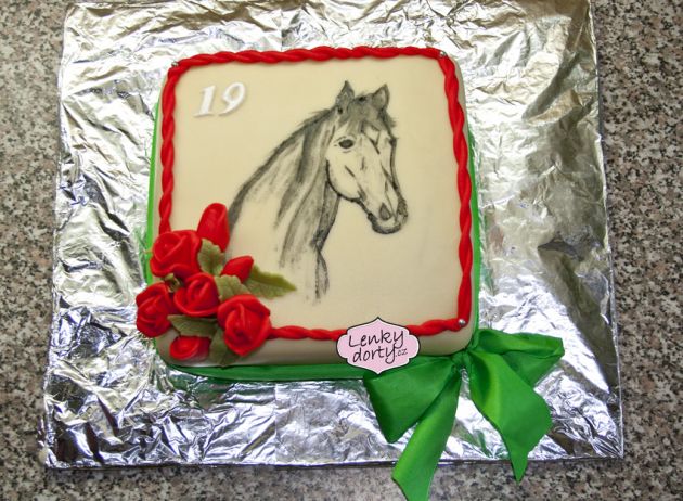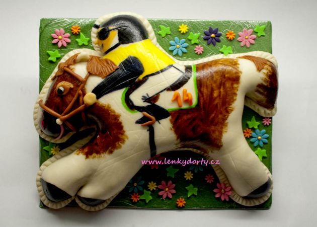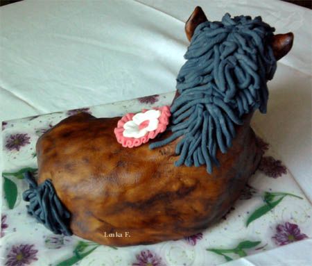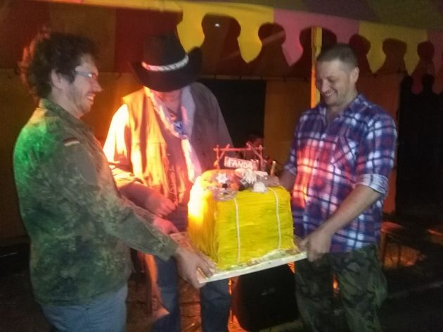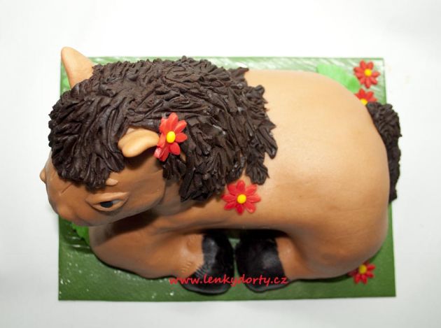 Balík slámy s koněm a westernovou tématikou na oslavu koňáků. Kůň je samostatný dort. Klasický korpus, pravá šlehačka, marcipán, punčovina. Váha přes 25 kg