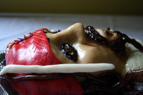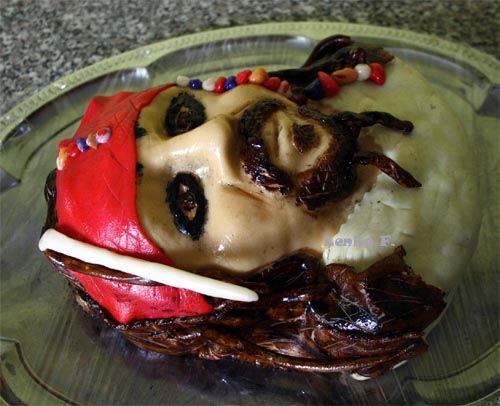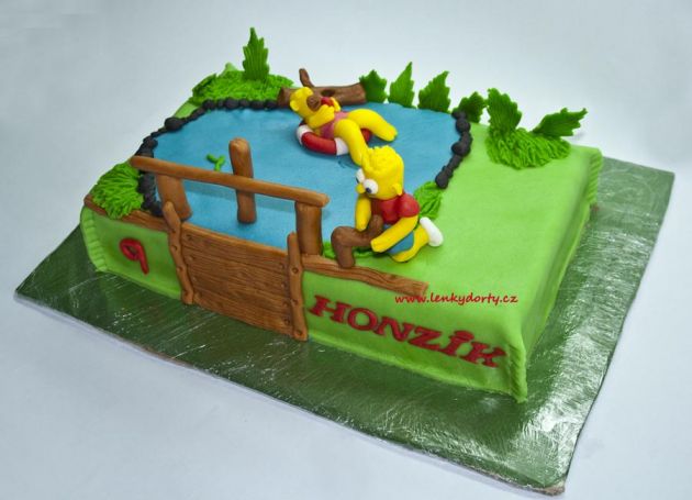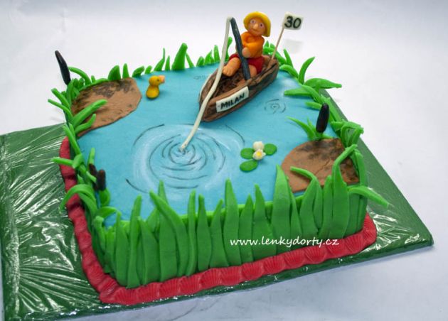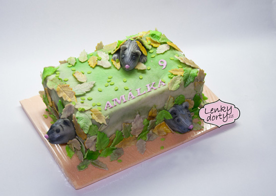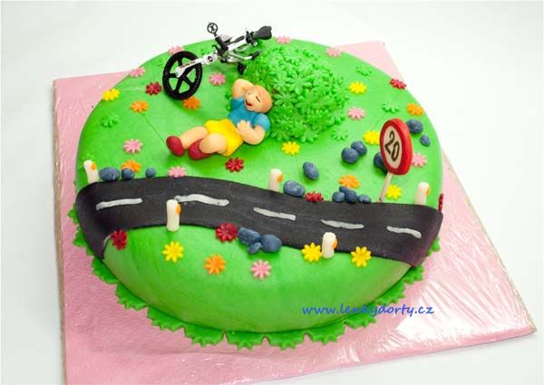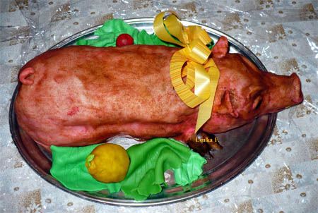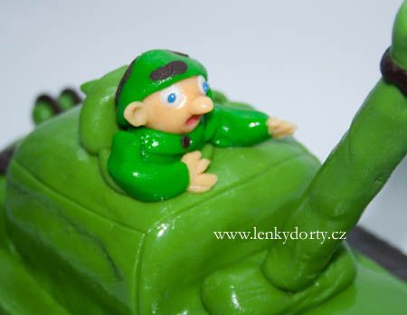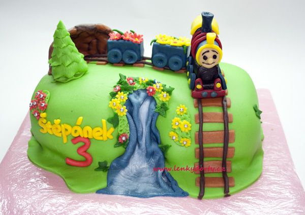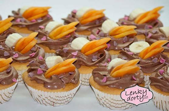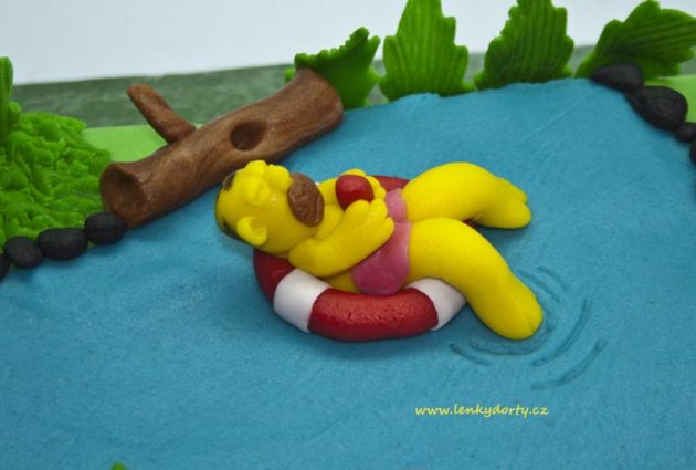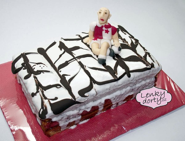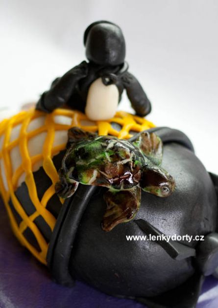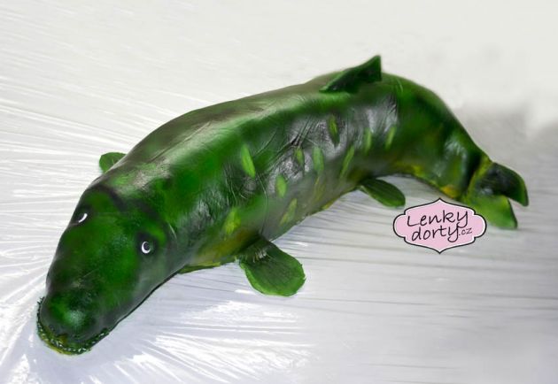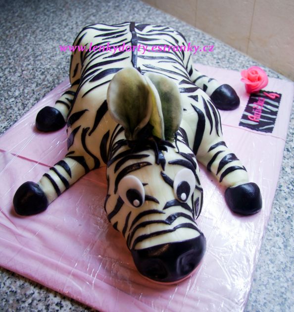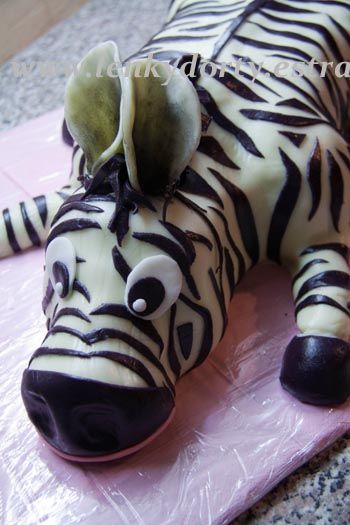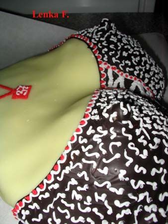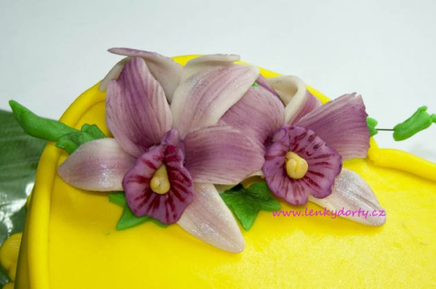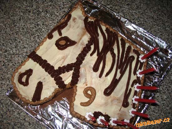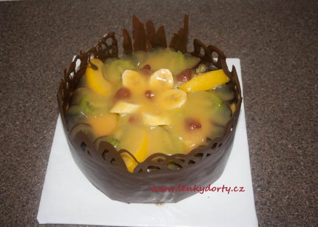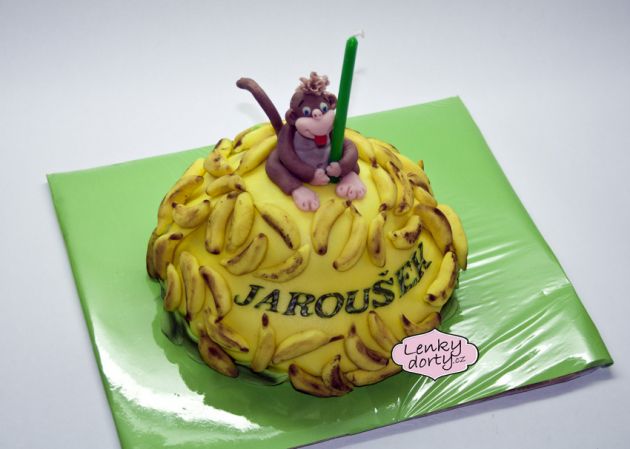 Mramorový korpus, čokoládový krém, banány, marcipán, délka 75 cm váha přes 5 kg