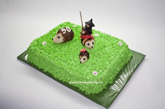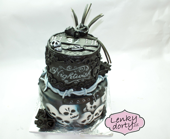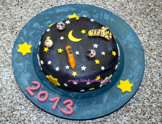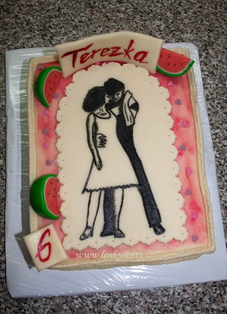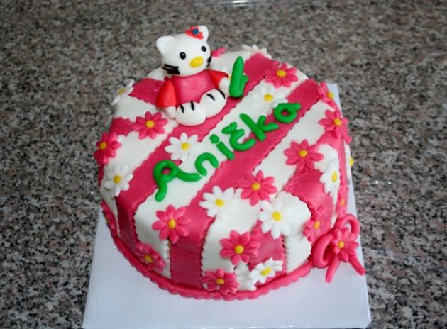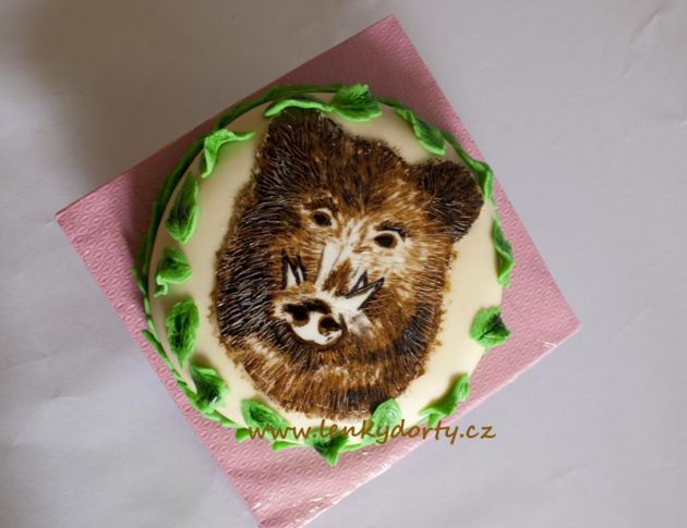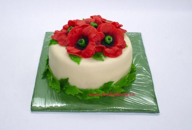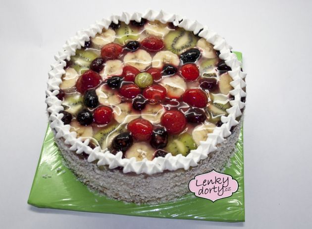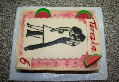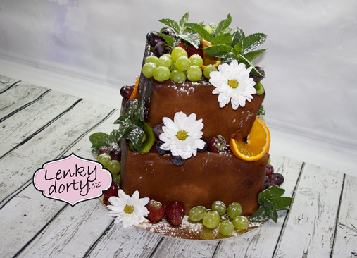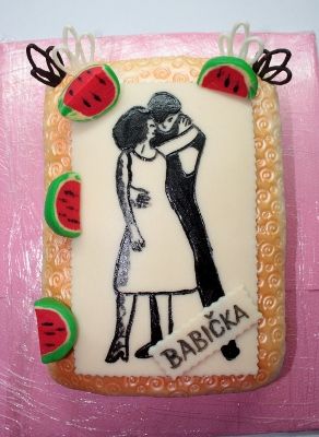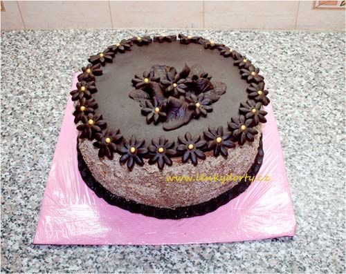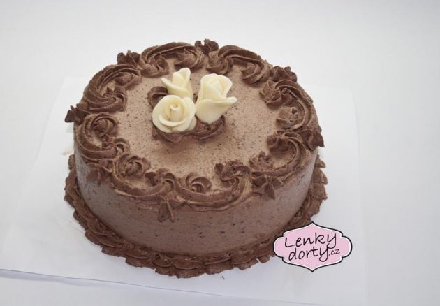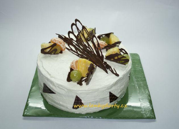 Klasický korpus, čokoládový krém, vanilkový krém, punčovina, marcipán, váha cca 7kg