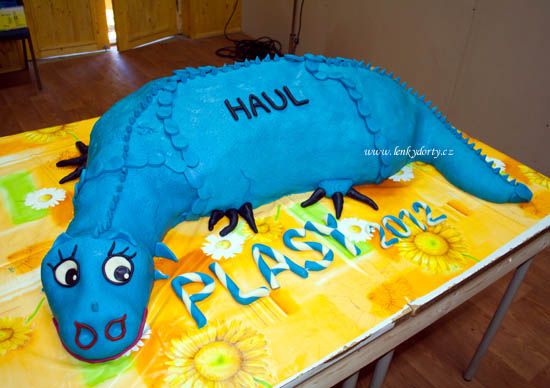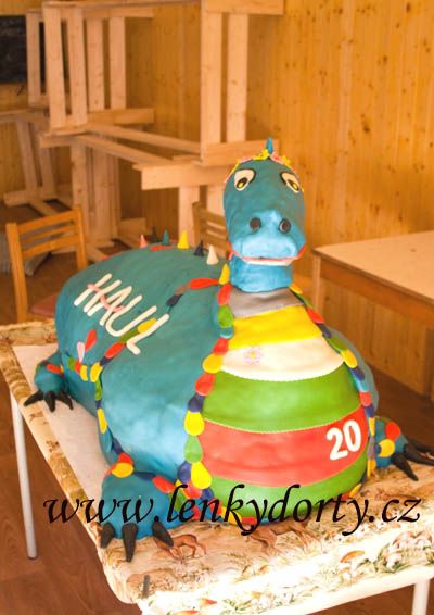 Dorty k tématickým táborům Dračí doupě ústecké agentury HAUL. Složením byl každý dort jiný. Děti ochutnaly klasický korpus s pudinkovým krémem, broskvemi, jahodami a ananasem; klasický korpus s kakaovým korpusem, šlehačkovým krémem s mandarinkami a také klasický i kakaový korpus s pudinkovým krémem a broskvemi. Vše pokryto pravým mandlovým marcipánem. Váha 90 kg, 70 kg (jednotliví draci), soubor dortů drak a sluj po cca 50 kg každý. Z největšího draka bylo na 600 porcí.